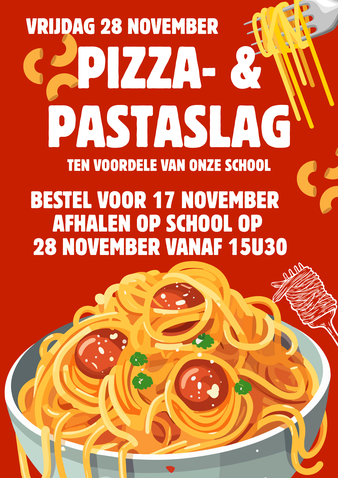 Bestel voor maandag 17 november je pizza en/of pasta.